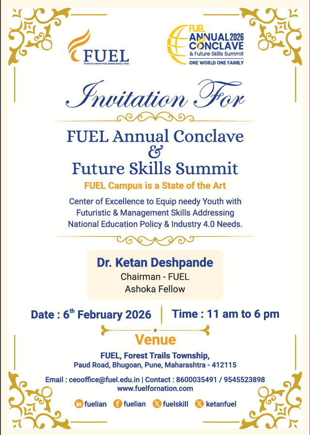 Friends Union for Energising Lives (FUEL) stems from the understanding that the youth in India form one of the most vulnerable groups, who on the one hand are expected to be the leaders to determine the destiny of India, and on the other lack essential information and opportunities to succeed in life.